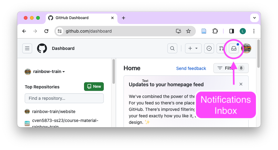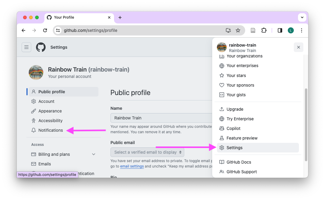 Currently, you receive emails when someone mentions you in a comment on GitHub. Let’s change the settings to receive notifications On GitHub.