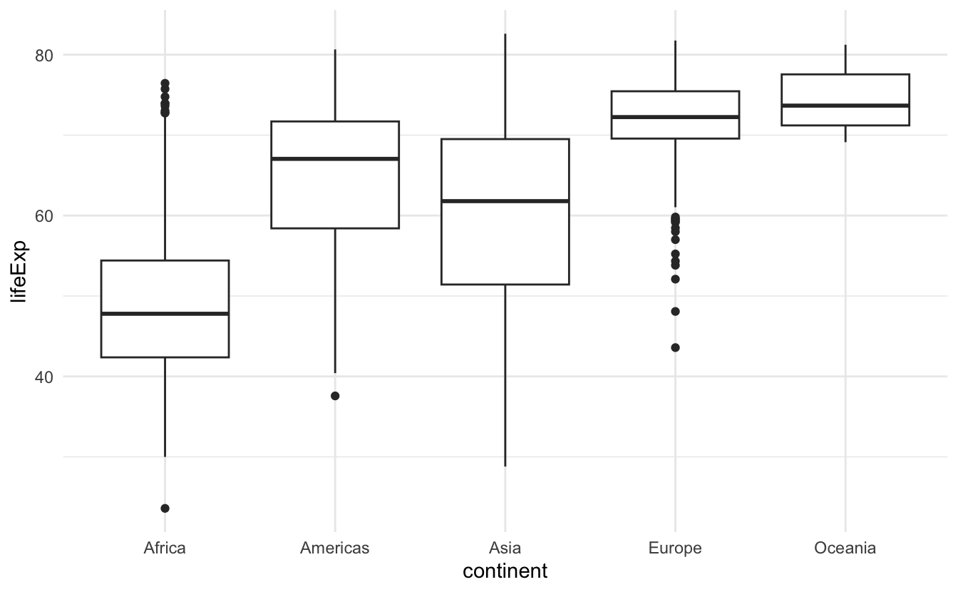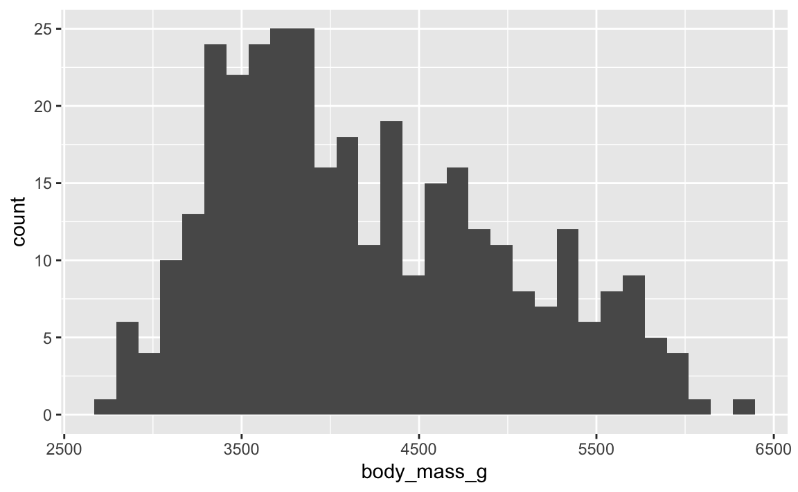 - Learners can compare three different geoms (bar/col, histogram, point) and their use case.