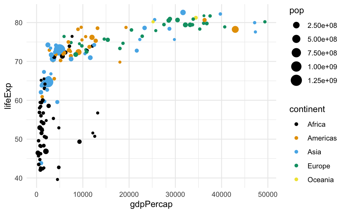 - Learners can control the colour scaling applied to a plot using colour as an aesthetic mapping.